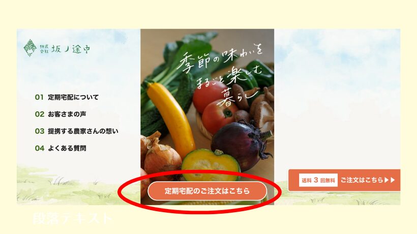 サイトに入り「定期宅配のご注文はこちら」をクリック