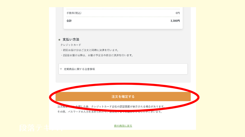 入力内容に間違いがないか確認し、「注文を確定する」をクリック。