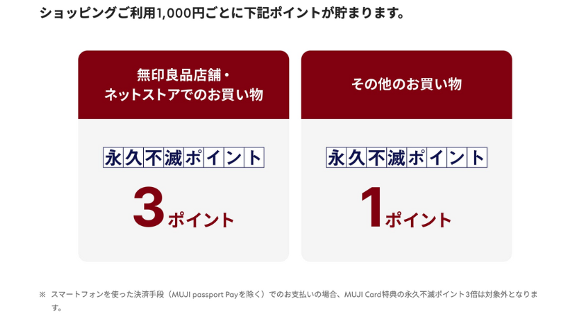 MUJIカードを利用することで永久不滅ポイントが通常の3倍付与されます。