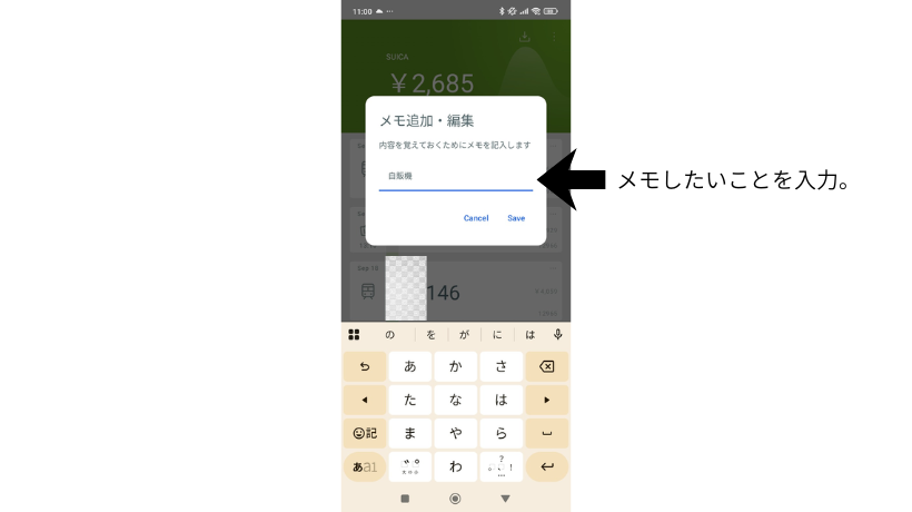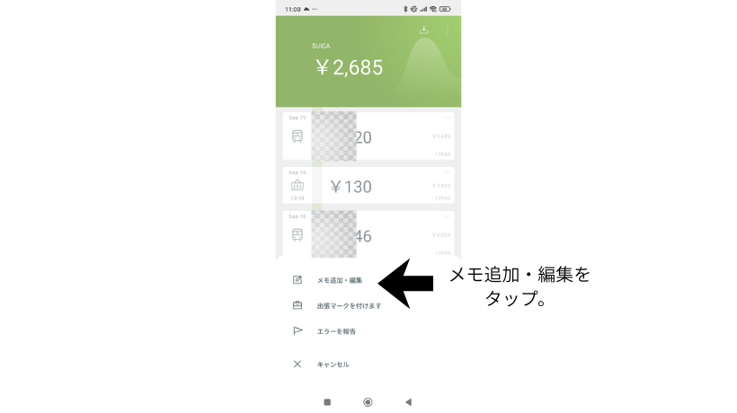 何に使ったお金かメモしておけば、家計簿をつける際にさっとチェックできて便利な機能です。