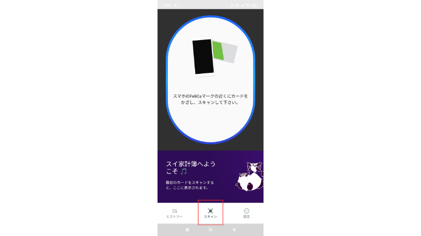 アプリを開くと真ん中にスキャンという項目がありますのでタップします。