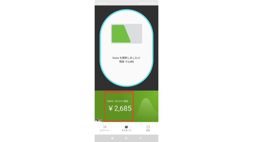 読み取りが成功すると、残高が記載されます。